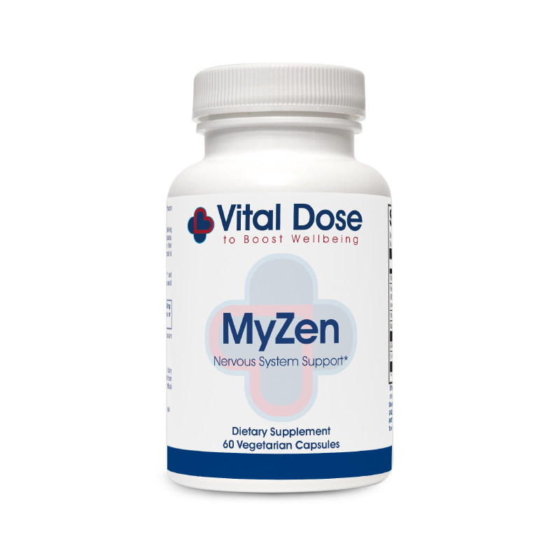 B Vitamins Due to their involvement in the synthesis of chemicals crucial to brain function, B vitamins are essential to mental and emotional well-being. Because B vitamins are water-soluble and not stored by the body, dietary or supplementary sources are critical to maintaining optimal levels. In addition, B vitamins can be destroyed or used at a higher rate with the consumption of alcohol, refined sugars, nicotine, and caffeine. MyZen provides vitamin B6 in its principal coenzyme form, pyridoxal 5’-phosphate (P5P); vitamin B12 in its readily bioavailable form, methylcobalamin; and folate in the form of 50% calcium folinate and 50% Quatrefolic®. Quatrefolic is a form of 5-MTHF (5-methyltetrahydrofolate) that is proven to have greater stability, solubility, and bioavailability than calcium salt forms.*